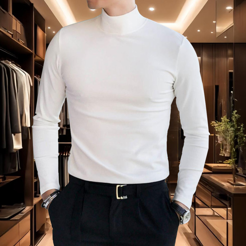 【總裁同款】男生秋冬大碼 德絨半高領長袖男士純色秋裝 上衣春秋氣質打底衫內搭中領秋衣